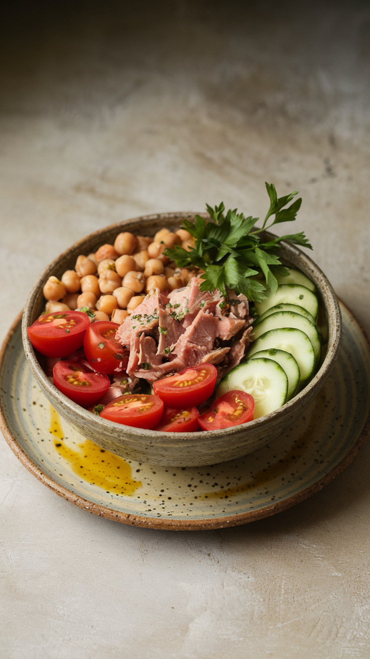 3. Ensalada de Garbanzos y Atún: Fresca y Alta en Proteína