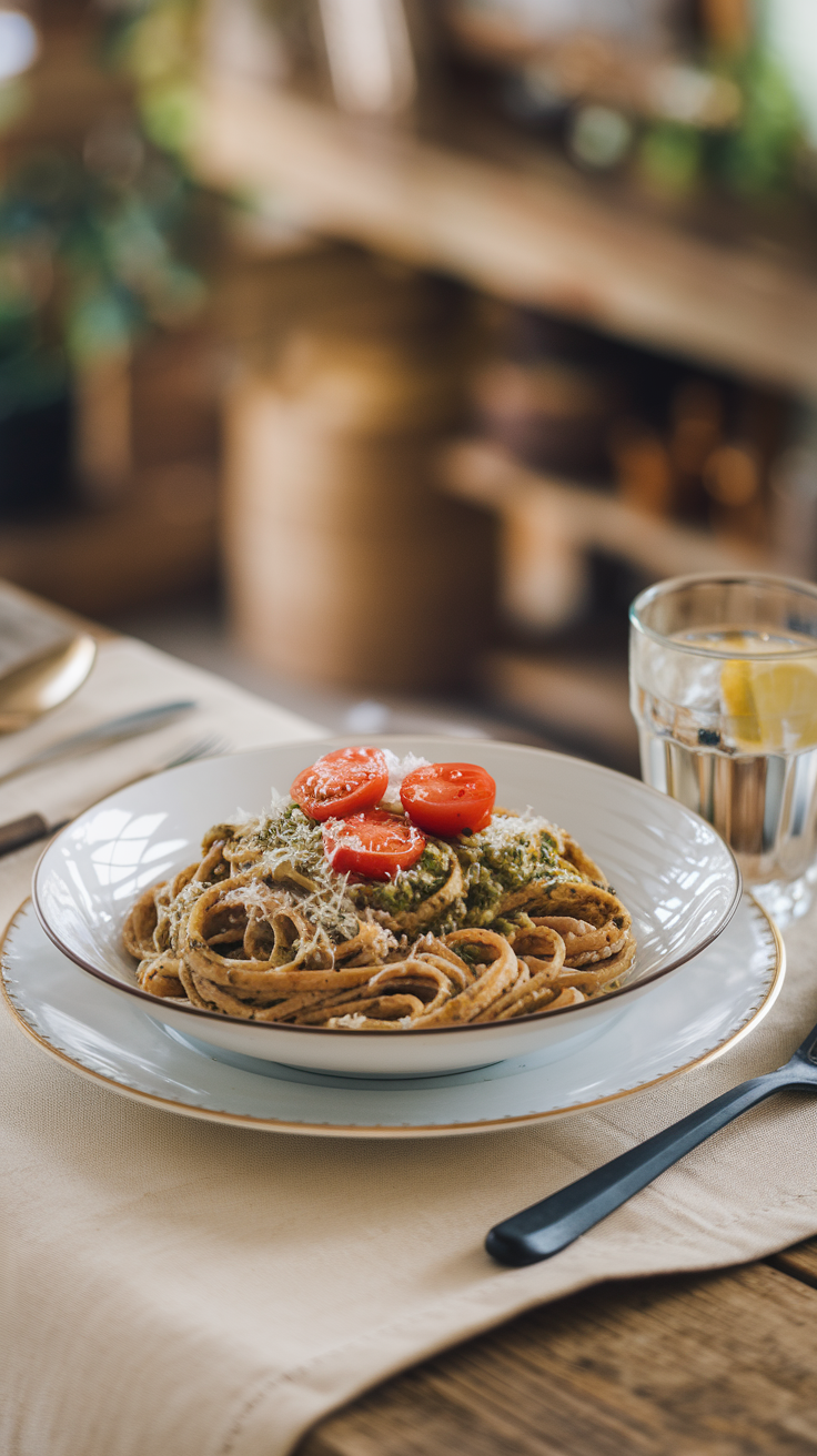 5. Pasta Integral con Pesto y Tomates Cherry: Ligera y Sabrosa