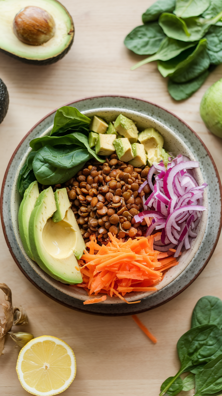 7. Ensalada de Lentejas y Aguacate