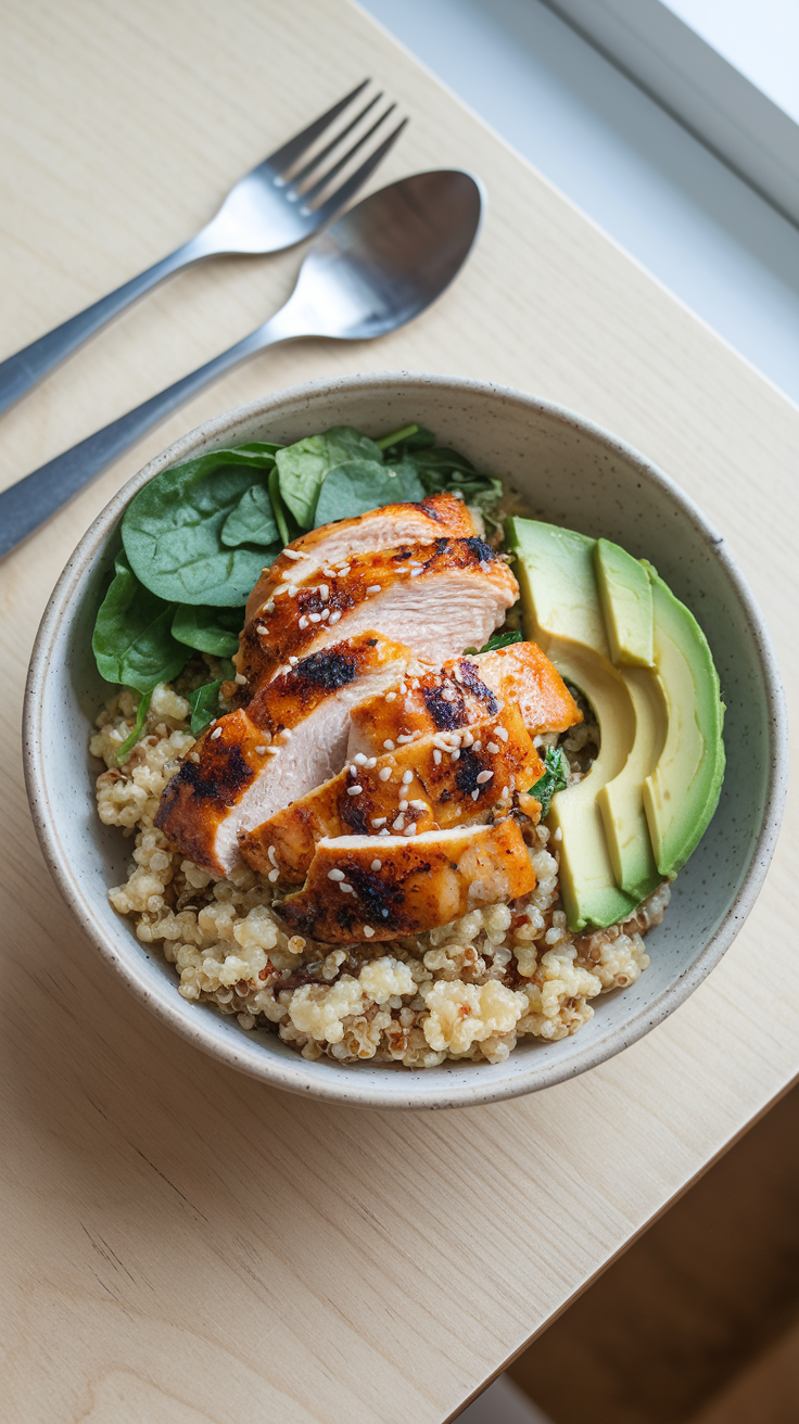1. Bowl de Pollo y Quinoa: Proteína y Fibra en un Plato Completo