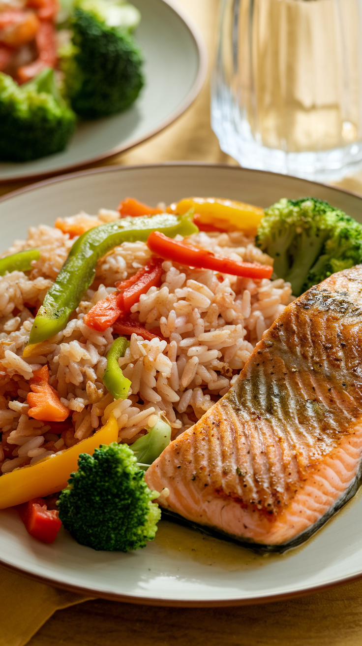 4. Arroz Integral con Verduras y Salmón: Un Plato Nutritivo y Completo