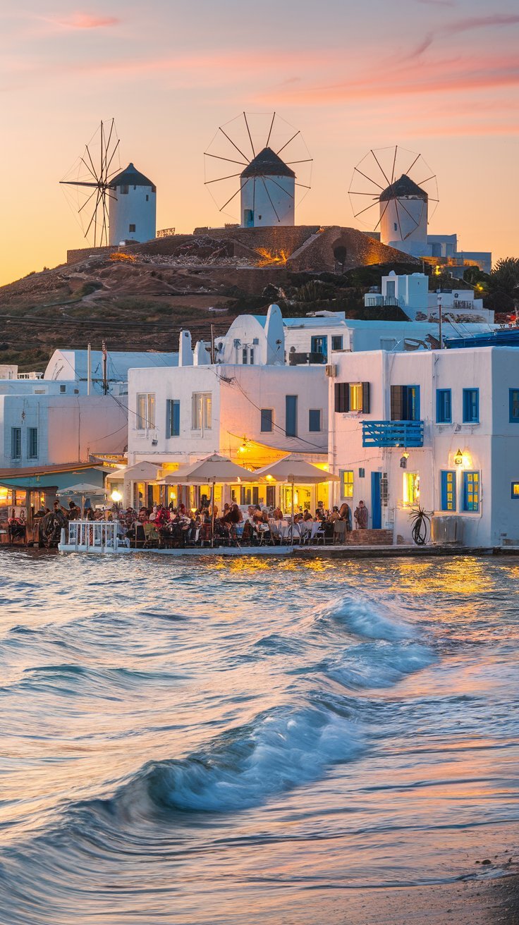 Mykonos es sinónimo de fiestas en la playa, pero también de calles laberínticas, molinos de viento y restaurantes con vistas espectaculares. Es el lugar perfecto para quienes buscan diversión y lujo.
