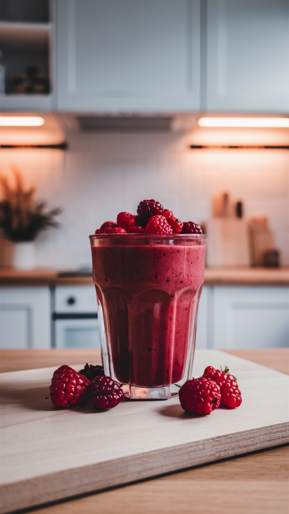 - Por qué Funciona: Este batido es saciante y está cargado de antioxidantes, proteínas y fibra.