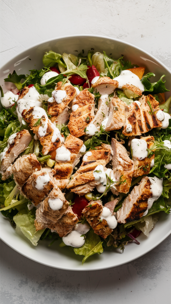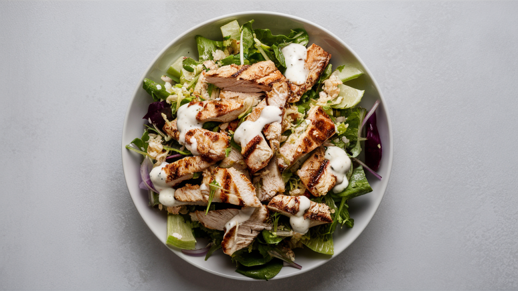 ENSALADA DE POLLO A LA PLANCHA CON ADEREZO DE YOGUR