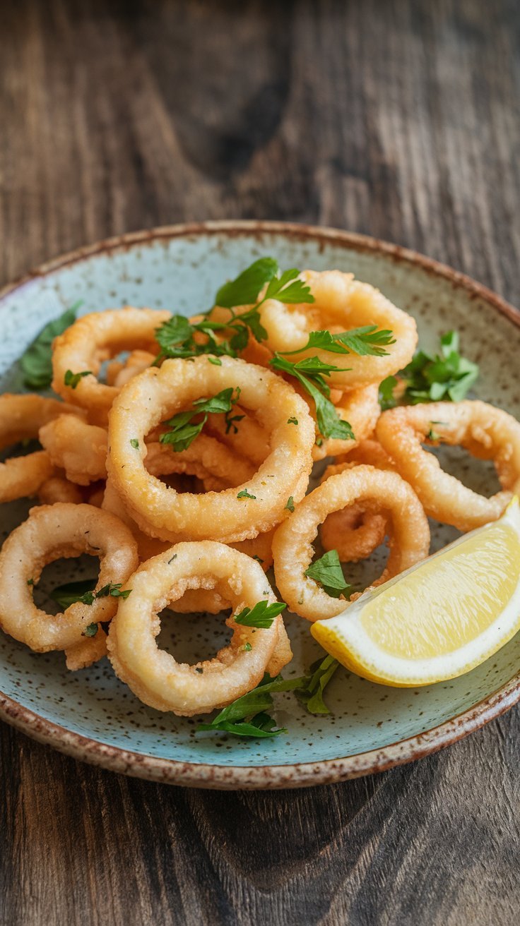 Calienta el aceite a fuego medio-alto y fríe los calamares hasta que estén dorados y crujientes.