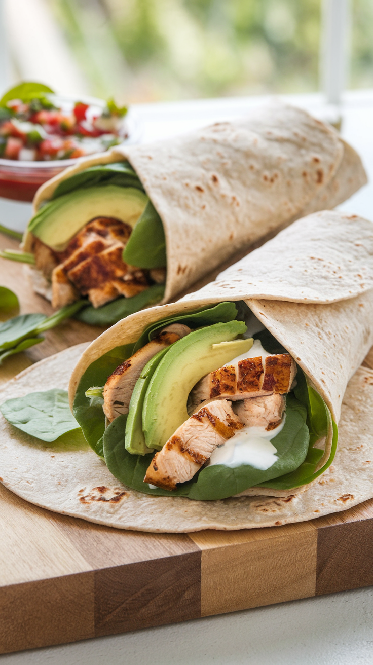 Este wrap es ideal para un almuerzo rápido y nutritivo. Cocina el pollo en una sartén con un poco de sal y pimienta hasta que esté bien dorado.
