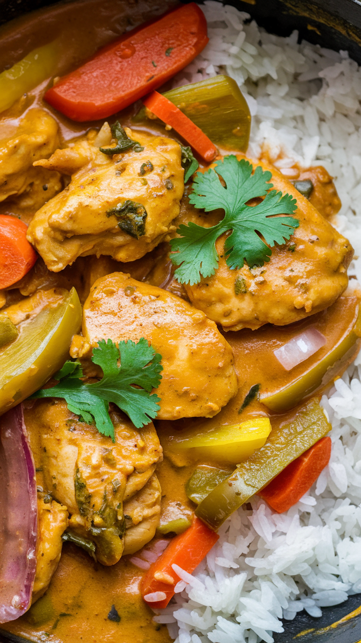 El pollo al curry es una fuente de proteínas, grasas saludables y especias antiinflamatorias, ideales para una recuperación óptima.