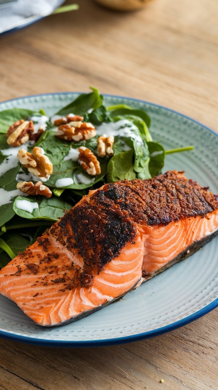 Salmón a la Plancha con Ensalada de Espinacas y Nueces