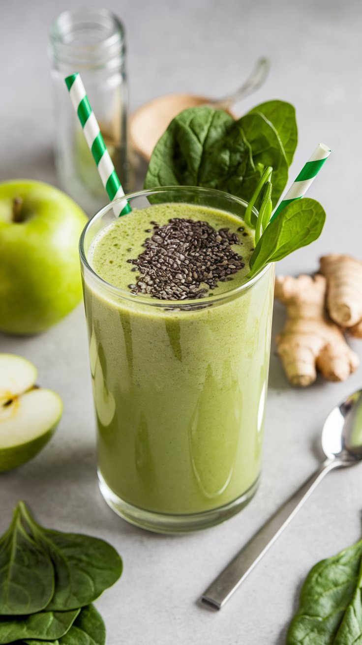 Smoothie Verde Detox con Espinacas, Manzana y Jengibre